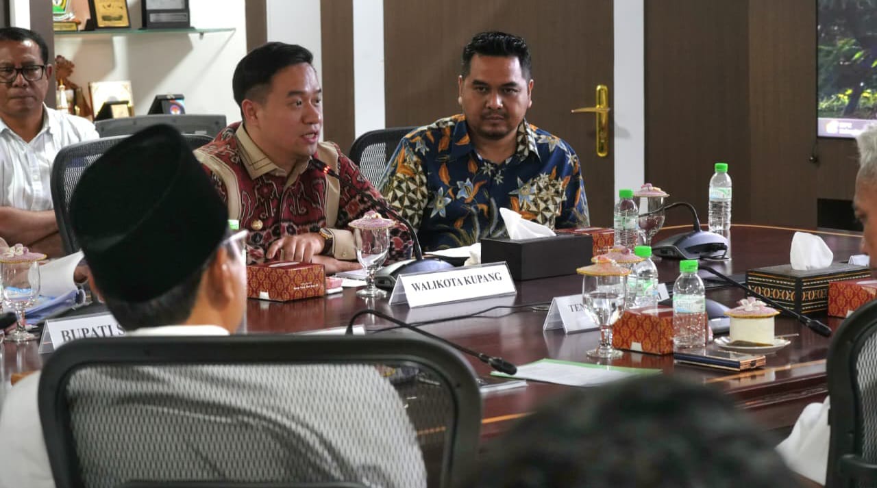 Sementara itu, Mensos Syaifulan Yusuf hadir bersama Wakil Menteri Sosial Agus Jabo dan Sekjen Kemensos Robben Rico. Pertemuan tersebut fokus membahas rencana penebalan bansos di Kota Kupang berbasis DTSEN dan program Sekolah Rakyat.