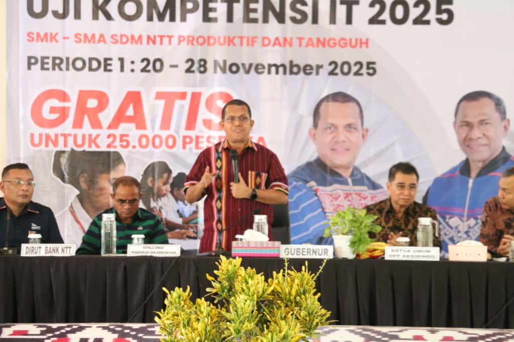 Suarantt.id, Kupang-Gubernur Nusa Tenggara Timur, Emanuel Melkiades Laka Lena, resmi membuka pelaksanaan perdana Program Uji Kompetensi IT Gratis bagi peserta didik SMA dan SMK se-Kota Kupang pada Kamis (20/11/2025) di Aula SMKN 1 Kupang. Program ini merupakan langkah awal dari inisiatif besar Pemerintah Provinsi NTT yang menargetkan 25.000 peserta di seluruh wilayah NTT.