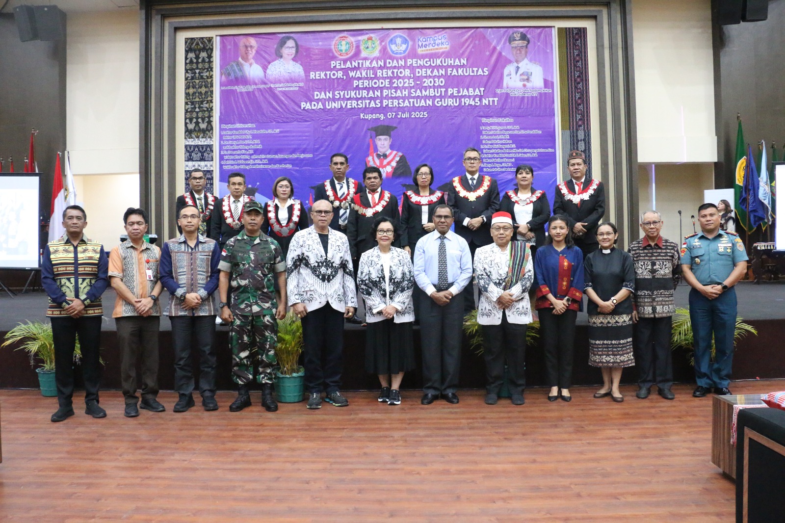 Acara pelantikan ini turut dihadiri oleh Ketua Umum Pengurus Besar PGRI, Prof. Unifah Rosyidi, jajaran Forkopimda Provinsi NTT, dan civitas akademika UPG 1945 NTT.