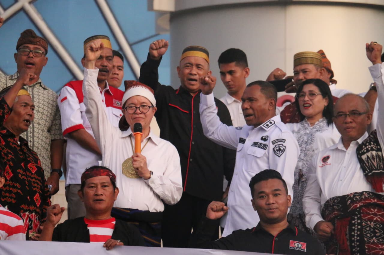 Suarantt.id, Kupang-Wakil Gubernur Nusa Tenggara Timur (NTT), Johanis Asadoma, menghadiri kegiatan Deklarasi Seruan Damai dan Doa Bersama yang digelar Forum Pembauran Kebangsaan (FPK) NTT bersama seluruh paguyuban etnis di depan Gedung Sasando, Kantor Gubernur NTT pada Rabu (3/9/2025) sore.