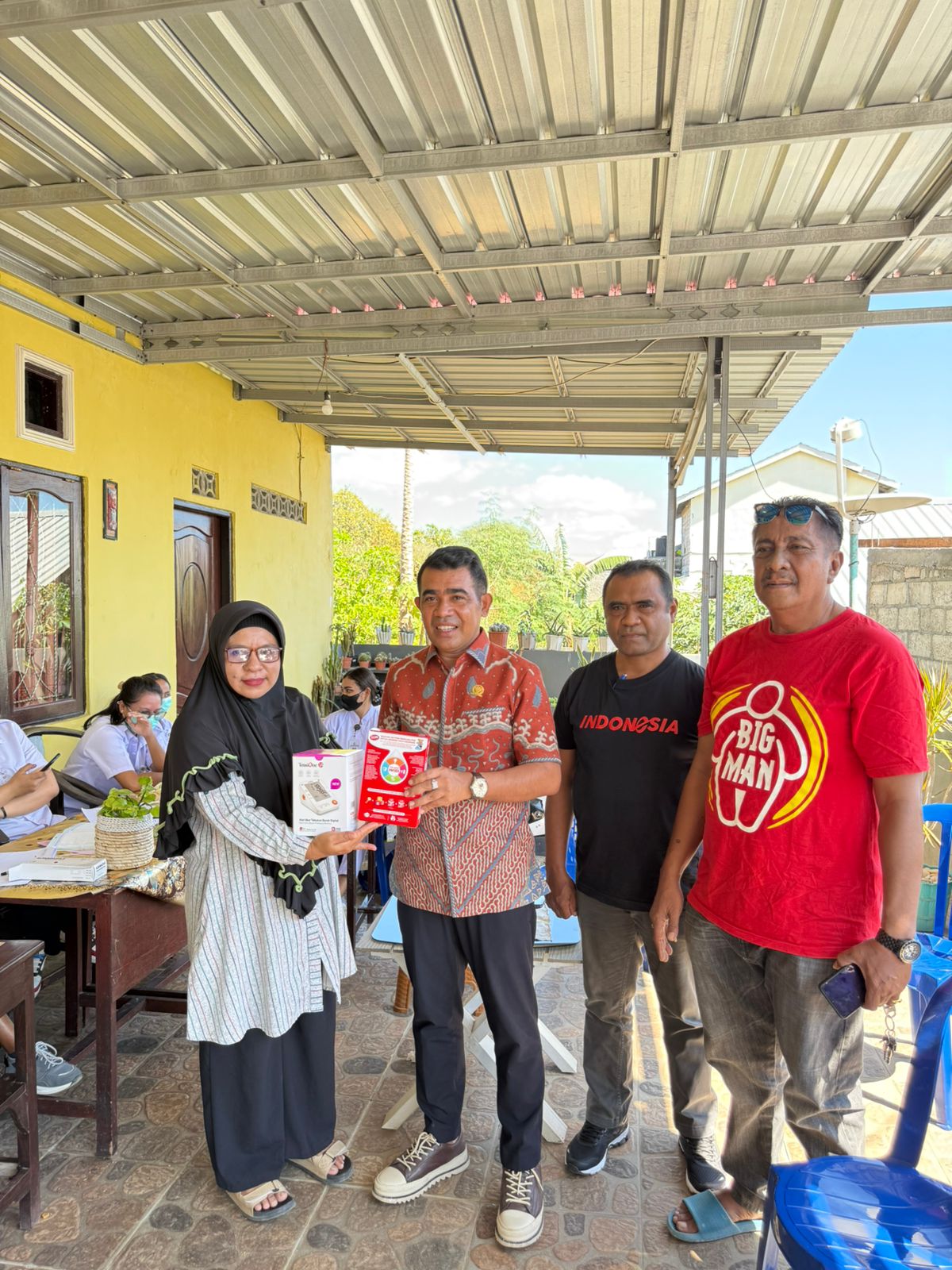 “Selama ini kami kekurangan alat tensi sehingga pemeriksaan kesehatan lansia tidak maksimal. Bantuan ini sangat membantu kami dalam melayani warga. Kami juga senang karena ada susu dan telur untuk balita, ini mendukung program pencegahan stunting,” ungkap Maria.