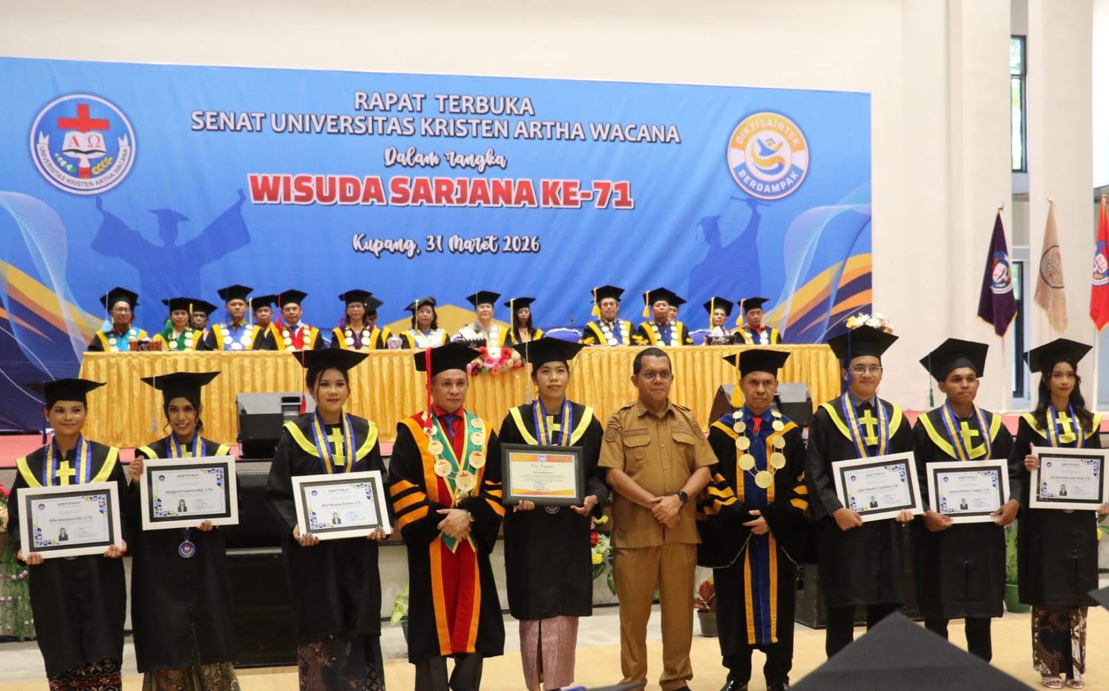 Ajakan tersebut disampaikan Gubernur Melki saat menghadiri Rapat Terbuka Senat UKAW dalam rangka Wisuda Sarjana ke-71 yang berlangsung di Auditorium Bahtera Artha Wacana, Selasa (31/3/2026).