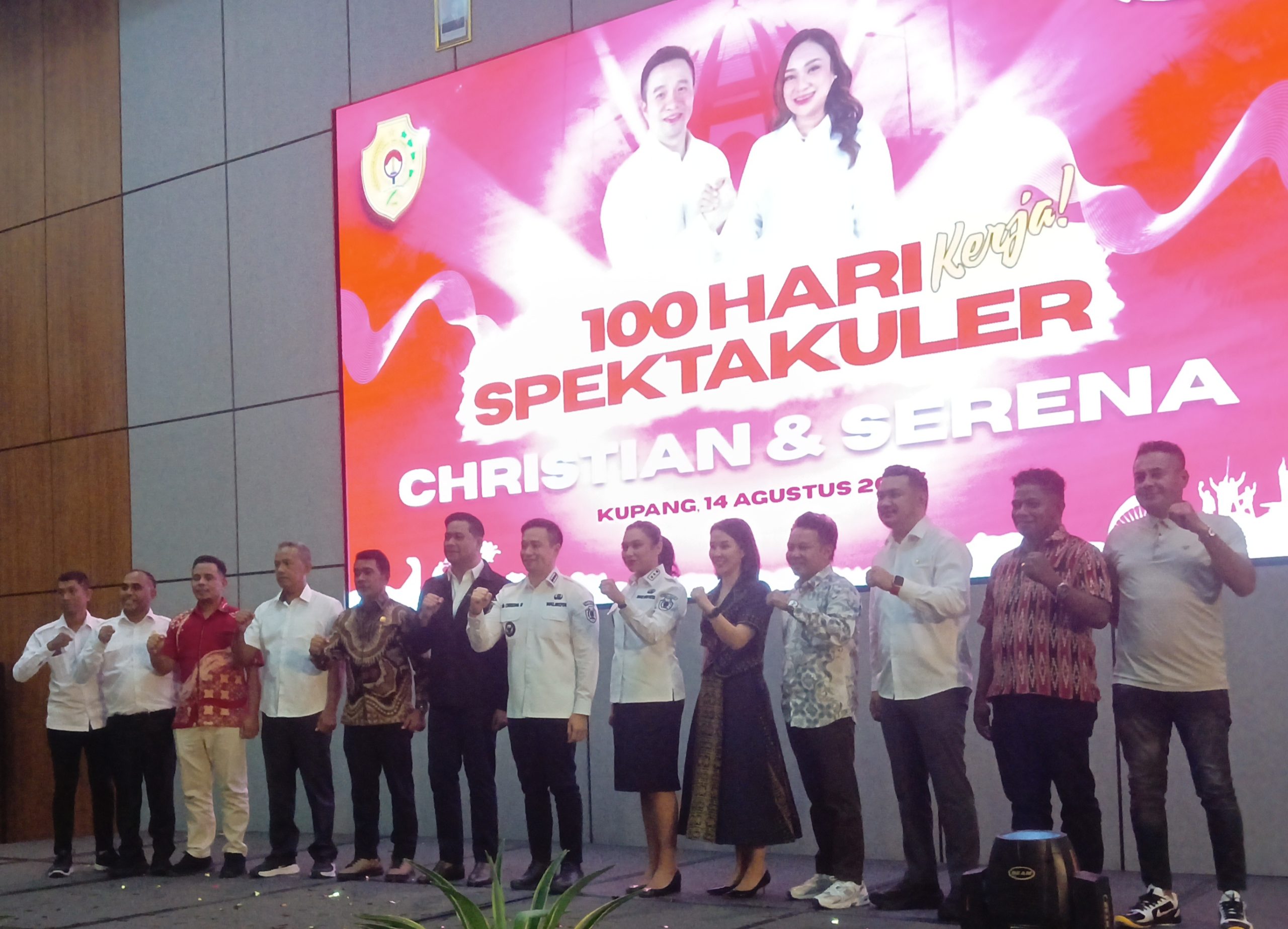 Wali Kota Didampingi Wawali Kupang Pose Bersama Anggota DPRD NTT dan Kota Kupang di Acara 100 Hari Kerja CS-AN di Hotel Harper Kupang. (Foto Hiro)