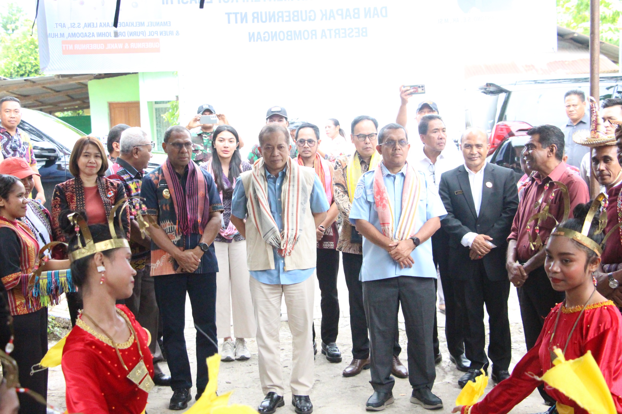 Kedatangan Menteri Ferry Yuliantono bersama rombongan disambut oleh Gubernur Nusa Tenggara Timur (NTT), Emanuel Melkiades Laka Lena, dan Wakil Gubernur Johanis Asadoma di VIP Pemda Bandara El Tari Kupang pada Sabtu (25/4/2026) siang.