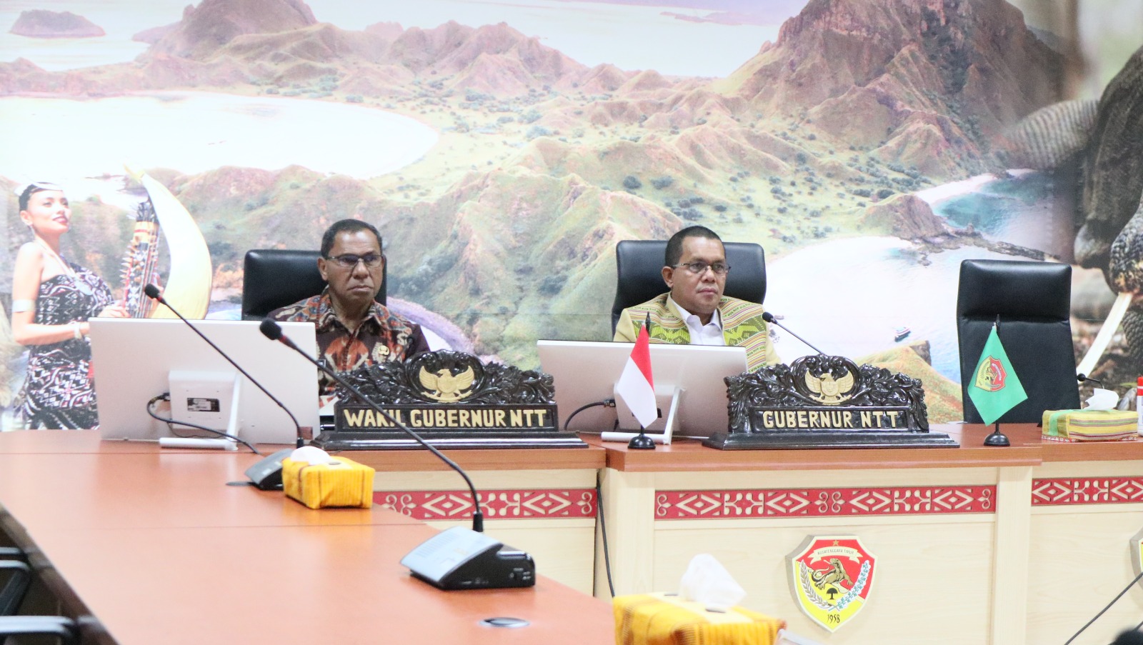 Suarantt.id, Kupang-Gubernur Nusa Tenggara Timur (NTT), Emanuel Melkiades Laka Lena, memimpin rapat strategis terkait pendanaan proyek Green Climate Fund (GCF) secara virtual dari Ruang Rapat Gubernur, Kamis (10/7). Rapat tersebut membahas proposal proyek penguatan ketahanan iklim bagi petani kecil di NTT yang digagas melalui kerja sama antara Pemerintah Provinsi NTT, National Designated Authority (NDA) Kementerian Keuangan, dan United Nations Development Programme (UNDP).