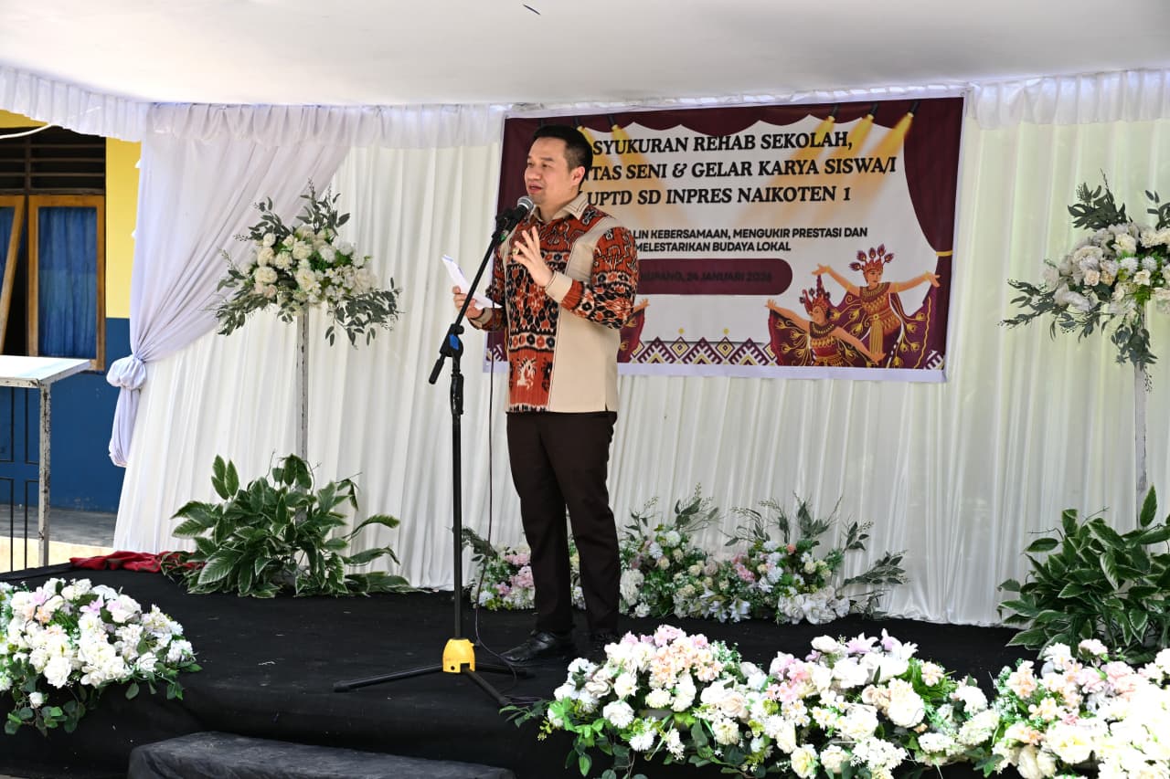 Suarantt.id, Kupang-Wali Kota Kupang, dr. Christian Widodo, menghadiri acara syukuran rehabilitasi gedung sekolah yang dirangkaikan dengan pentas seni siswa di Lapangan UPTD SD Inpres Naikoten 1 pada Sabtu (24/01/2026).