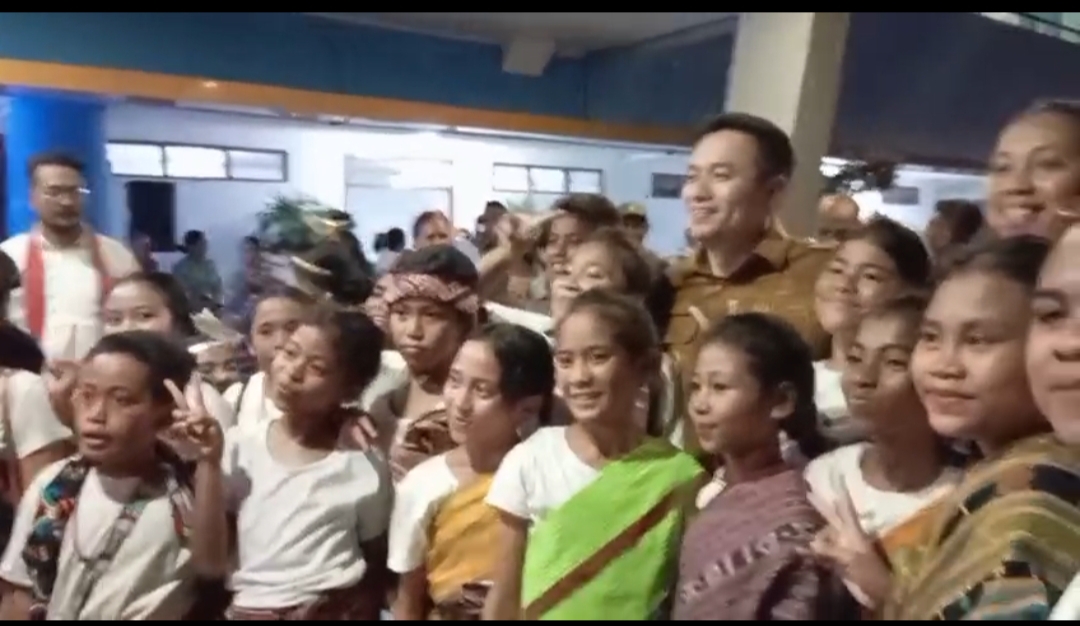 Wali Kota Kupang Pose Bersama Anak-anak Sekolah pada RAT KSP TLM di GOR Oepoi Kupang pada Senin, 14 April 2025. (Foto Keniz)
