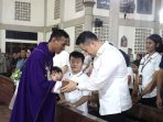 Suarantt.id, Kupang-Wali Kota Kupang, dr. Christian Widodo, bersama keluarga menghadiri Perayaan Misa Rabu Abu di Gereja Katolik St. Petrus Rasul, TDM, pada