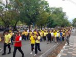 Suarantt.id, Kupang-Hujan yang mengguyur Kota Kupang pada Sabtu (18/10/2025) pagi tak menyurutkan semangat ratusan warga yang ikut meramaikan kegiatan jalan sehat dalam