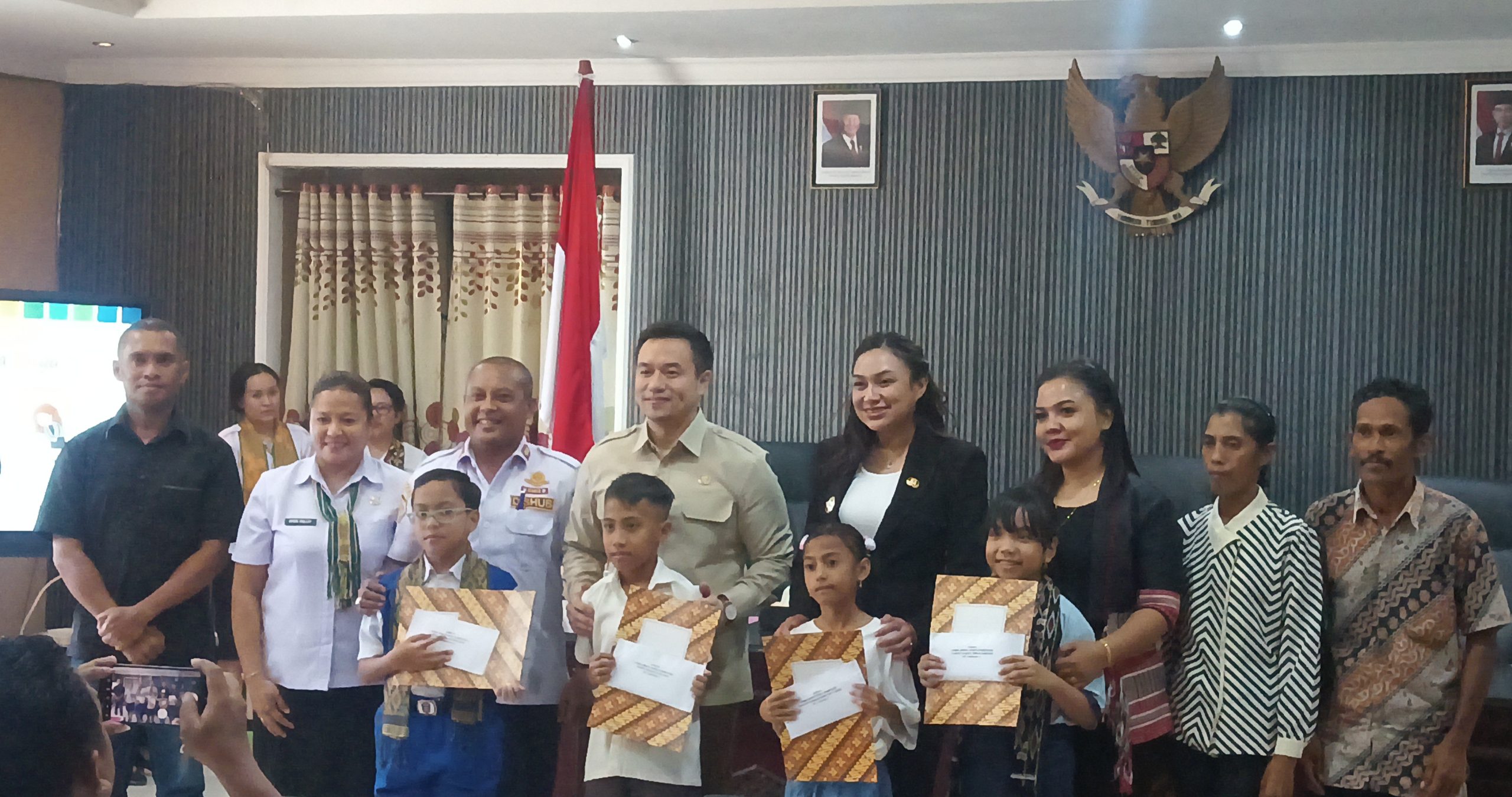 Suarantt.id, Kupang-Wali Kota Kupang, dr. Christian Widodo, dan Wakil Wali Kota Kupang, Serena C. Francis, memberikan apresiasi kepada empat siswa-siswi berprestasi yang berhasil meraih juara dalam Kompetisi Abacus Internasional Tahun 2024. Bentuk apresiasi yang diberikan berupa bonus uang tunai dengan nominal bervariasi, yakni Rp6 juta, Rp5 juta, Rp4 juta, dan Rp3 juta. Acara penyerahan bonus ini berlangsung di Ruang Rapat Garuda Wali Kota Kupang, Rabu (19/3/25).