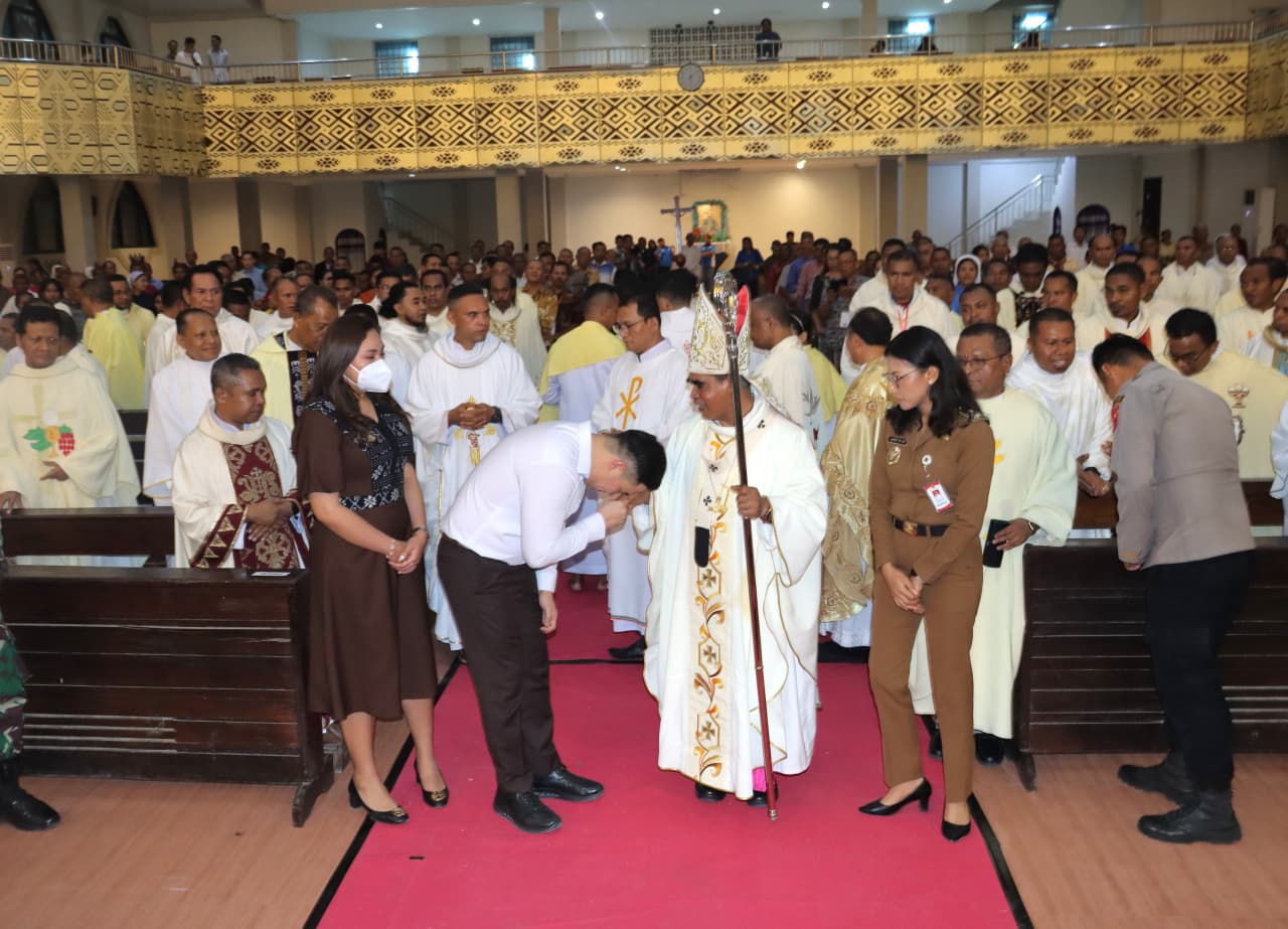 Suarantt.id, Kupang-Wali Kota Kupang, dr. Christian Widodo, menghadiri pembukaan Musyawarah Pastoral (Muspas) Keuskupan Agung Kupang yang digelar di Paroki St. Yoseph Pekerja Penfui pada Senin (29/9/2025). Acara turut dihadiri Uskup Agung Kupang, Mgr. Hironimus Pakaenoni, Wakil Wali Kota Kupang Serena C. Francis, Wakil Bupati Kupang Aurum Obe Titu Eki jajaran pemerintah, aparat keamanan, serta ratusan perwakilan umat Katolik.