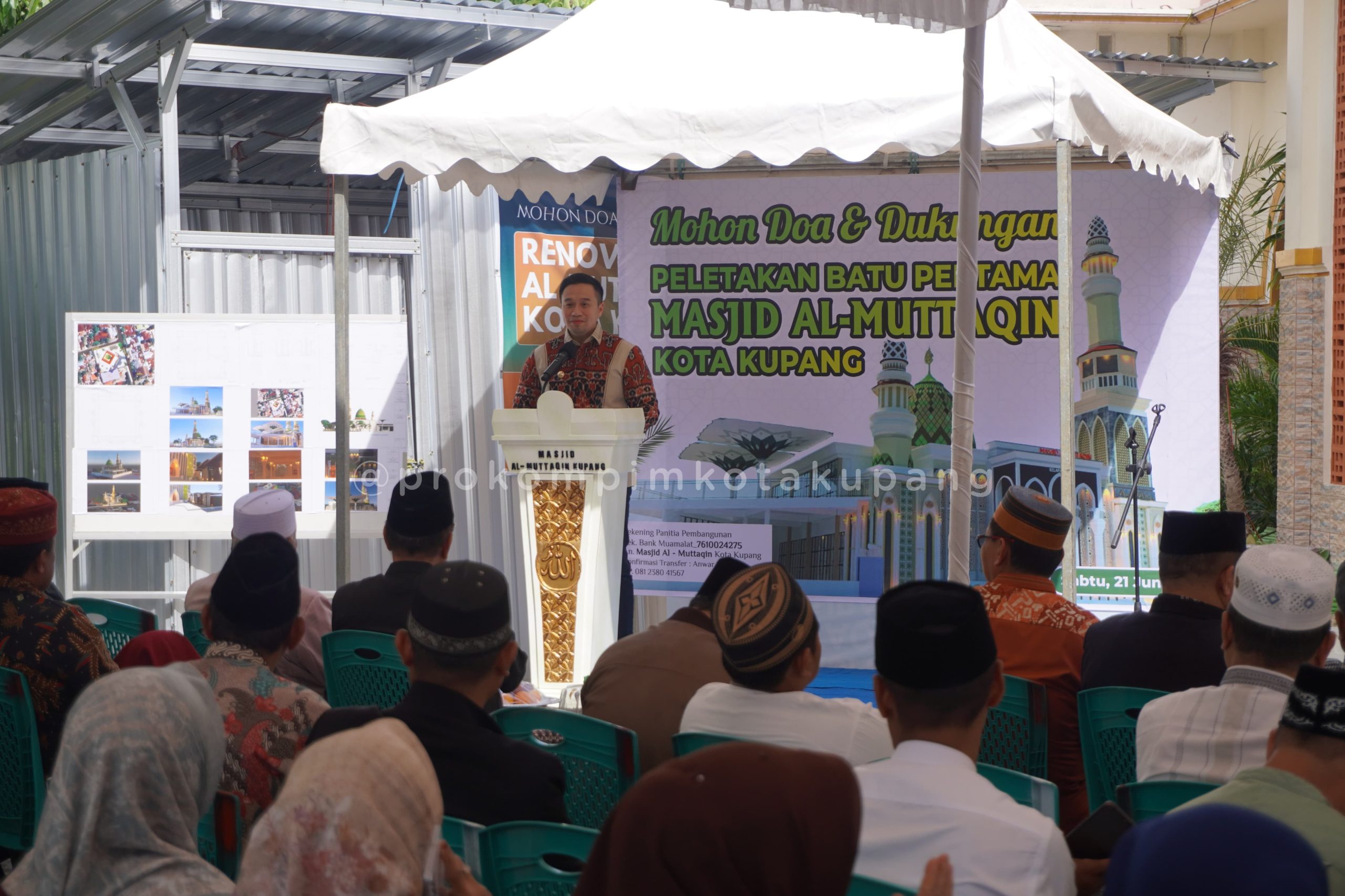 Dalam sambutannya, Wali Kota menekankan bahwa peletakan batu pertama bukan sekadar tanda dimulainya pembangunan fisik masjid, melainkan menjadi wujud nyata komitmen kebersamaan, kasih, dan toleransi antarumat beragama di Kota Kupang.