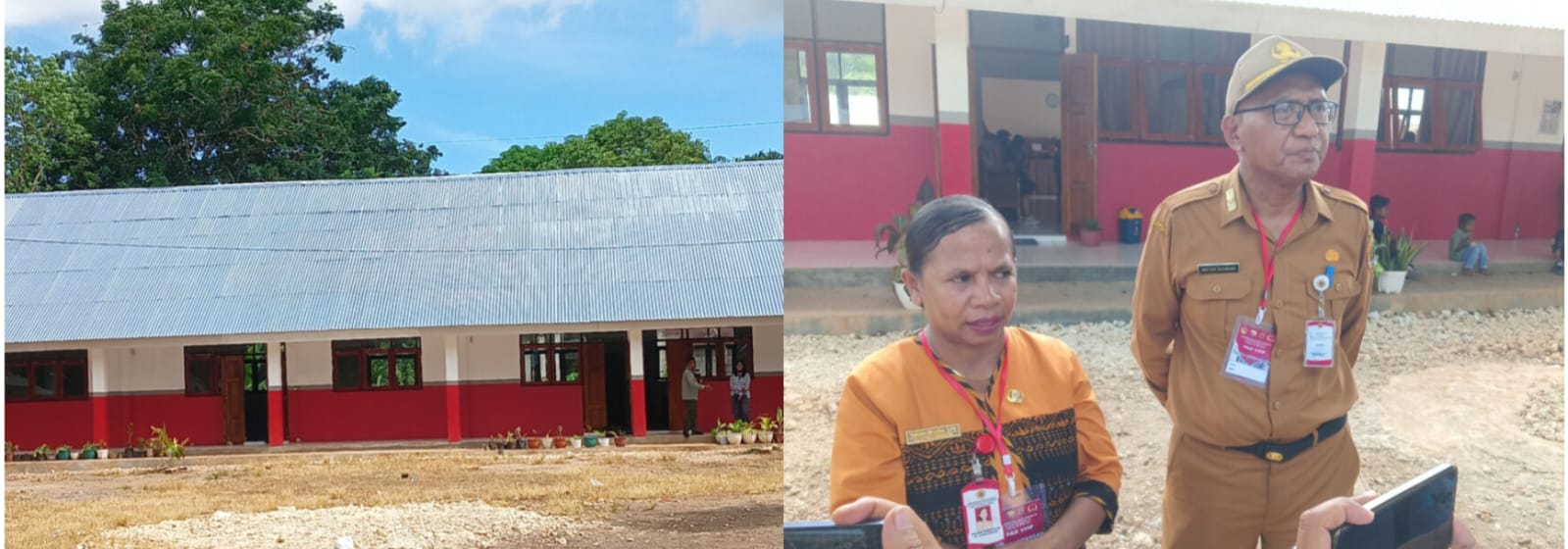 Kepala Dinas Pendidikan dan Kebudayaan Kabupaten Kupang Marten Rahakbauw dan Kepsek SD Inpres Kaniti Yuliana Nenabu Beri Keterangan Pers Usai Kunjungan Wapres Gibran Rakabuming Raka pada Senin, 6 April 2026. (Foto Hiro)