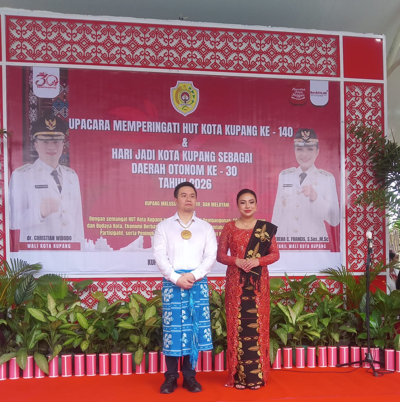 Upacara yang berlangsung di Lapangan Kantor Wali Kota Kupang itu dipimpin langsung oleh Wali Kota Kupang, dr. Christian Widodo, dan dihadiri oleh jajaran pemerintah, tokoh masyarakat, serta undangan yang tampil mengenakan pakaian adat dari berbagai daerah di Nusa Tenggara Timur (NTT).