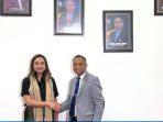 Suarantt.id, Dili-Wakil Wali Kota Kupang terpilih 2024, Serena Cosgrova Francis, bertemu dengan Menteri Perdagangan dan Industri Timor-Leste, Filipus Nino Pereira, di Dili