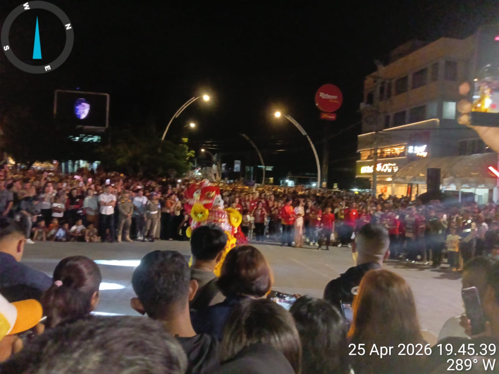 Warga Kota Kupang Menikmati Atraksi Barongsai di Bundaran Tirosa pada Sabtu, 25 April 2026. (Foto Hiro)